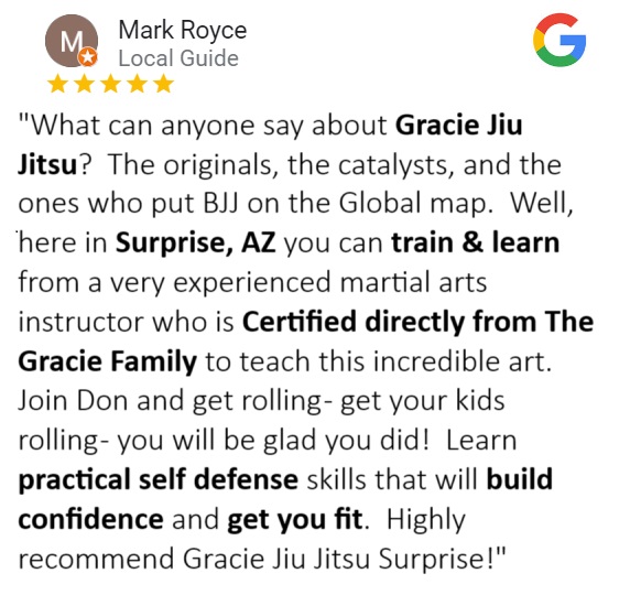 By opting in, you agree to receive periodic text messages & emails from Gracie Jiu-Jitsu Surprise. Your information will never be shared. Reply STOP to cancel. Standard rates may apply.